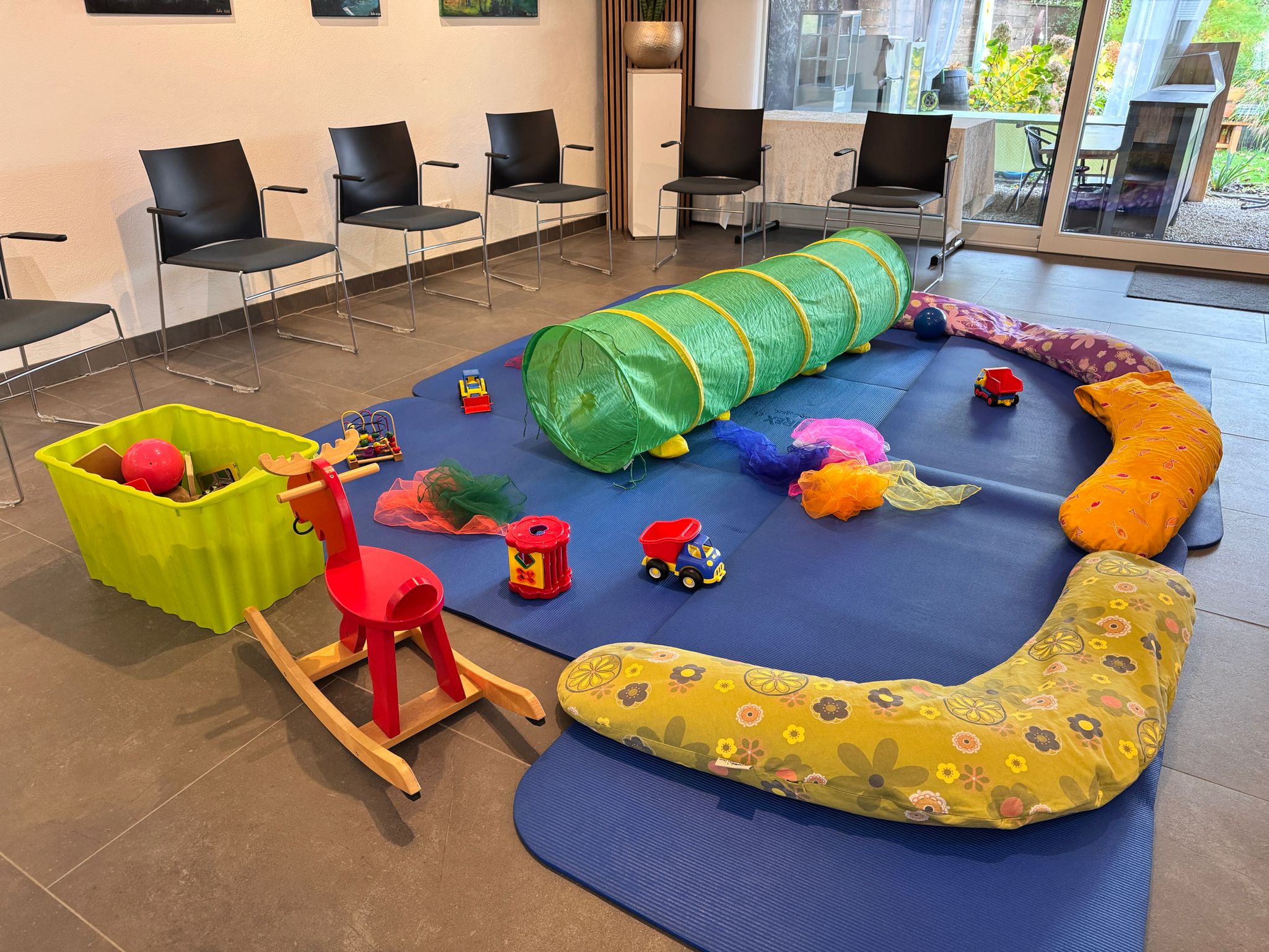 Im Sommer kann der Treff auch draussen im großen Garten stattfinden. (Krabbeldecken und Spielzeug bitte dann selbst mitbringen)